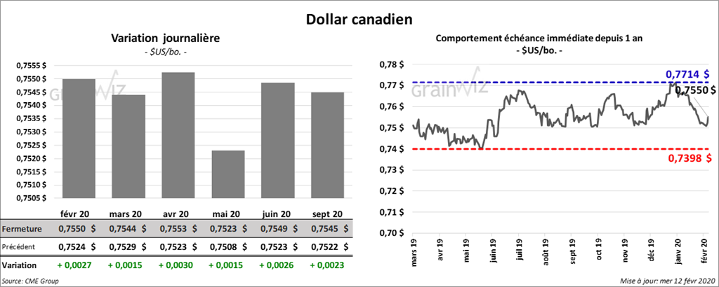 Dans le rapport WASDE présenté hier, le USDA estimait que la trituration de soya US est demeurée inchangée par rapport à janvier dernier à 2,05 milliards de boisseaux. Il a par contre signalé des baisses de production de tourteau et d’huile de soya US, ce qui impliquait une réduction annuelle des rendements comparativement à l’an dernier. Selon le USDA, les inventaires de soya US 2019/2020 ont baissé à 425 millions de boisseaux sous l’effet d’une augmentation des exportations de soya US.