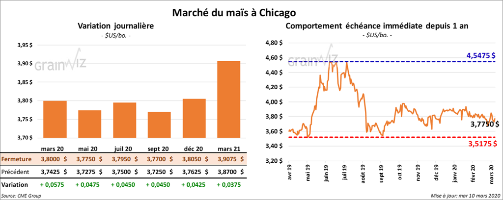 Dans son rapport WASDE de mars présenté ce midi, le USDA laisse inchangé son estimé des inventaires de fin d’année de maïs US à 1,892 million de boisseaux. La production brésilienne de maïs reste inchangée à 101 millions de tonnes. Celle du maïs argentin est également inchangée à 50 millions de tonnes.