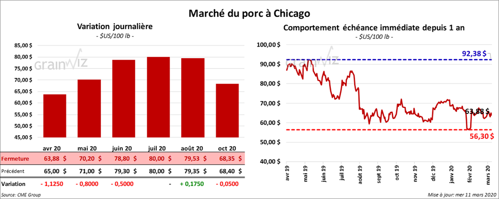 Les contrats de porc US aux échéances les plus rapprochées ont terminé la session en baisse de 1,12 $.