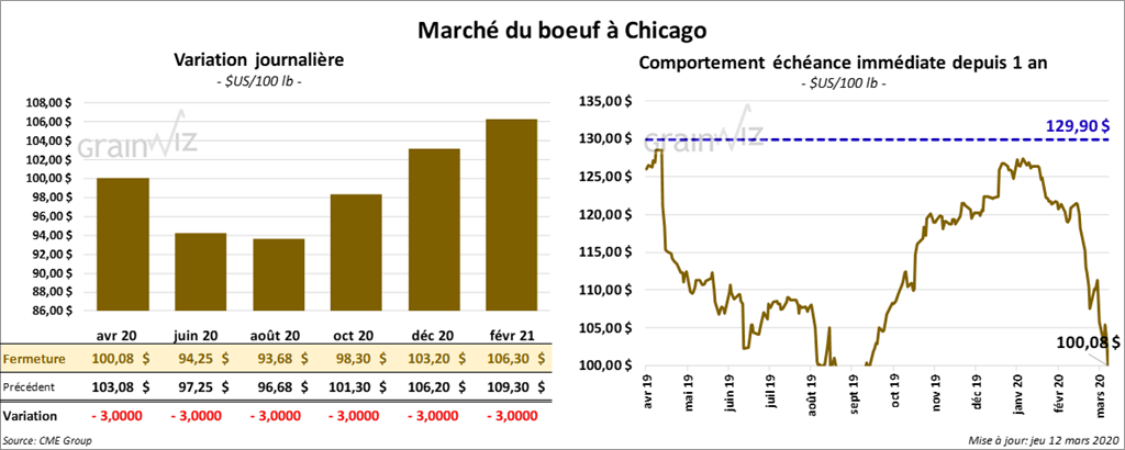 Les contrats de bœuf US, comme ceux de veau US, ont terminé la session à leurs limites à la baisse.