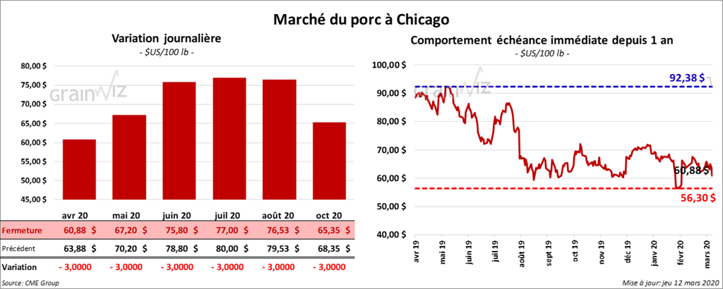 Le 10 mars dernier, le CME Lean Hog Index était en hausse de 48 cents à 57,75 $