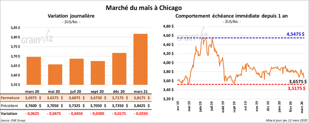 Les contrats de maïs US ont terminé la session en baisse de 6 à 9 ½ cents.