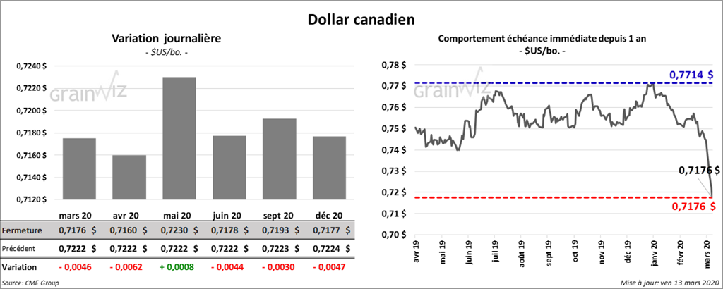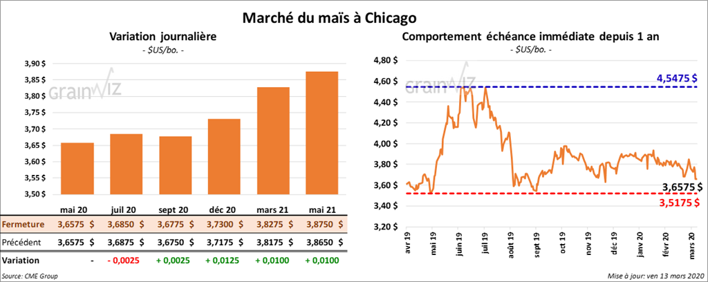 Le contrat mars 20 a expiré à 3,70 ¾ $/boisseau, soit à un cent à la hausse. Les autres contrats aux échéances les plus rapprochées ont terminé la journée sur une note partagée, soit d’une fraction de cent à l’exception du contrat de décembre 20 qui a gagné 1 ¼ cents.