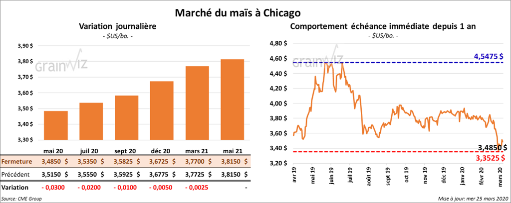 Les contrats de maïs US ont terminé la journée en hausse 1 ½ à 2 cents.