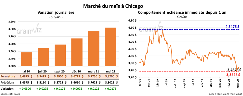 Les contrats de maïs US aux échéances les plus rapprochées ont terminé la journée inchangés ou en hausse de ¾ cents.