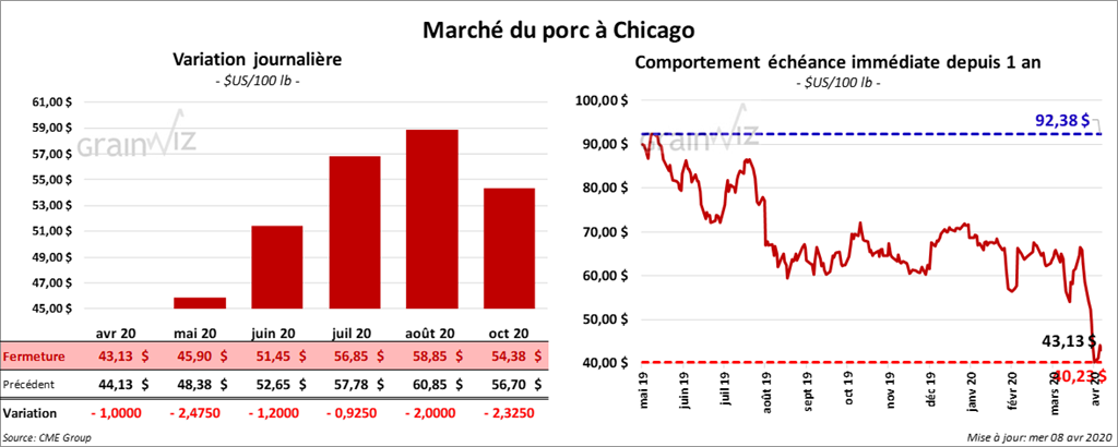 Les contrats de porc US ont clôturé avec des pertes de plus de 2,47 $ et le contrat avril 20 va expirer dans 7 jours.