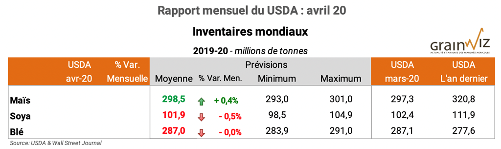 Pour accéder aux résultats de ce rapport lors de sa publication (en anglais): WASDE Avril 2020