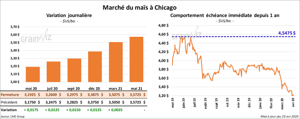 Les contrats de maïs US ont terminé la séance avec des gains. Ceux aux échéances les plus rapprochées ont clôturé dans le vert entre 1 ½ et 1 ¾ cents. Ceux aux échéances les plus éloignées ont terminé à plus de 2 ¼ cents.