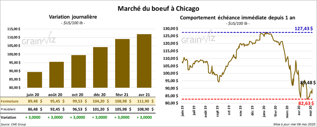 Les contrats de bœuf US ont terminé la journée à leurs limites à la hausse de 3,00 $ grâce à celui février 21. Les contrats de veau US ont également fini la session à leurs limites à la hausse de 4,50 $.