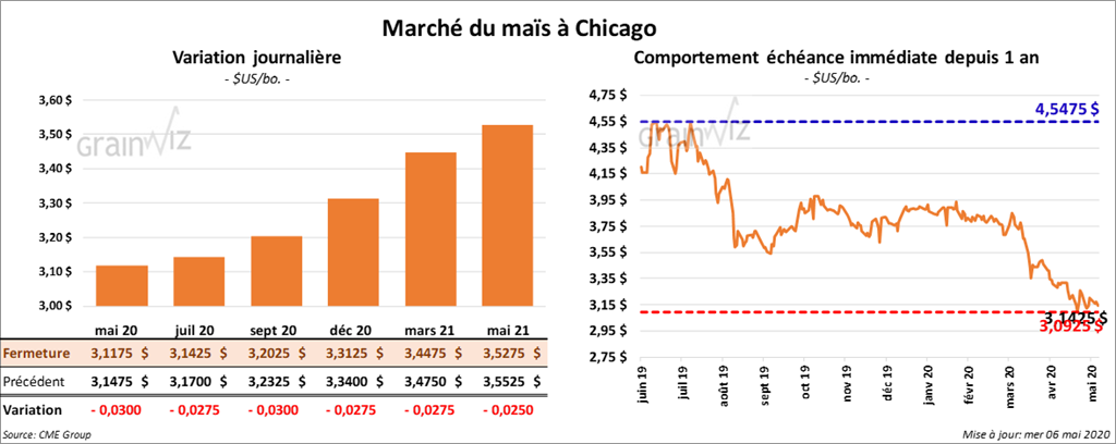 Mardi prochain, le USDA présentera son rapport d’offre et de demande du mois de mai. Le marché prévoit une production de maïs 2020/2021 à 15,749 milliards de boisseaux. Mondialement, les analystes s’attendent à une production de maïs 2020/2021 à 1,149 milliard de tonnes.