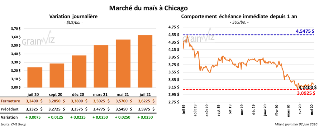 Les contrats de maïs US ont terminé la session en hausse de 1 à 3 cents. Ceux aux échéances les plus rapprochées ont été les plus faibles.
