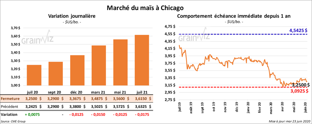 Les contrats de maïs US aux échéances les plus rapprochées ont terminé la session dans le rouge de 3 ¼ à 5 cents.