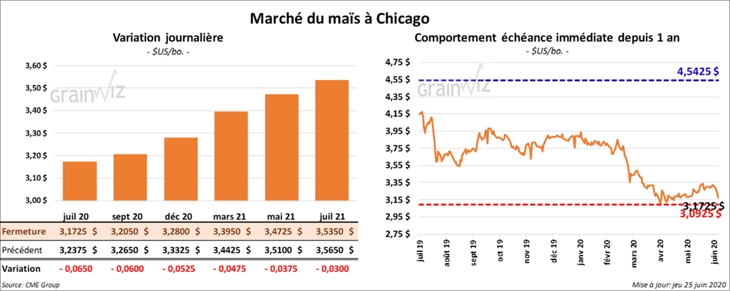 Les contrats de maïs US aux échéances les plus rapprochées ont clôturé dans le rouge par 3 ½ à 7 cents.