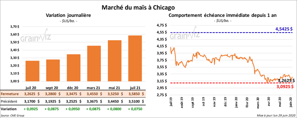 - Au cours de la semaine du 25 juin dernier, les ventes à l’exportation de maïs US ont été de 48,61 millions de boisseaux, ce qui était une baisse par rapport à la semaine précédente, mais aussi une hausse annuelle de 333 %.