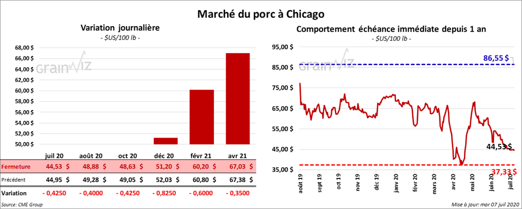 - Le 2 juillet dernier, le CME Lean Hog Index était en hausse de 64 cents à 45,66 $.