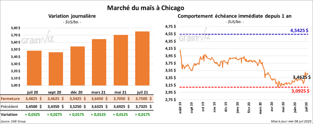 Les contrats de maïs US ont terminé la session en hausse de 1 ¼ à 3 ¼ cents.