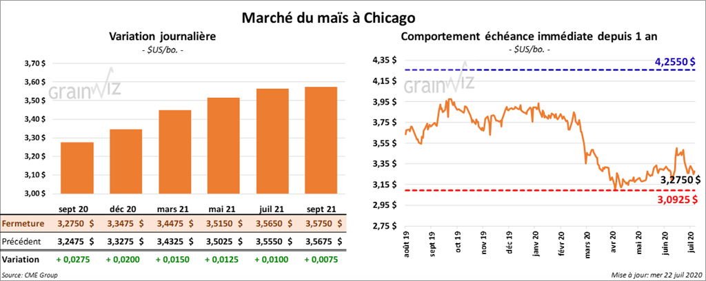 Les contrats de maïs ont terminé la session en hausse de 2 ¾ à 4 ¾ cents.