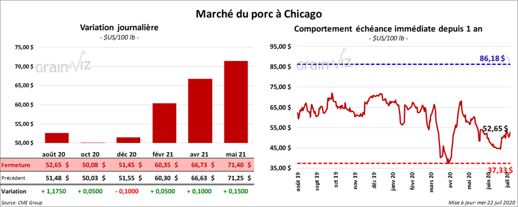 - Le 20 juillet dernier, le CME Lean Hog Index était en hausse de 74 cents à 48,64