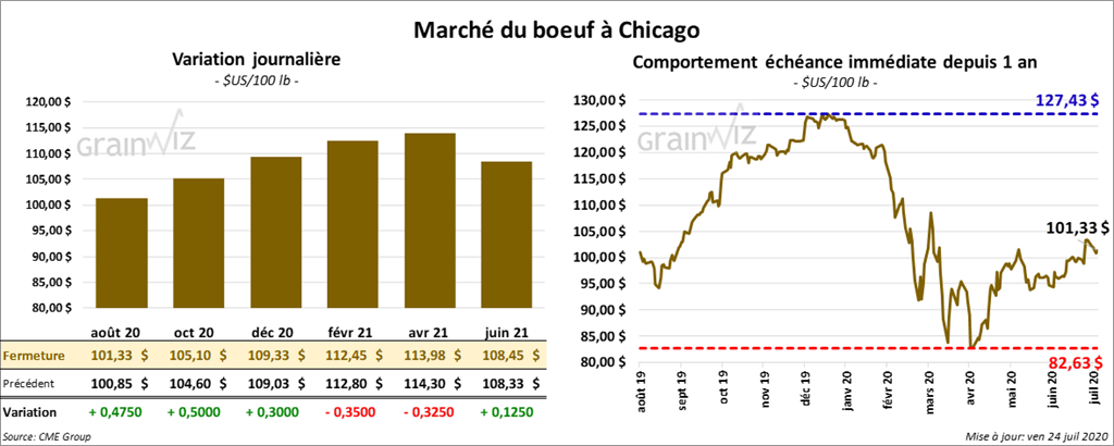 - Le 23 juillet dernier, le CME Feeder Cattle Index était en hausse de 1,47 $ à 139,43 $.