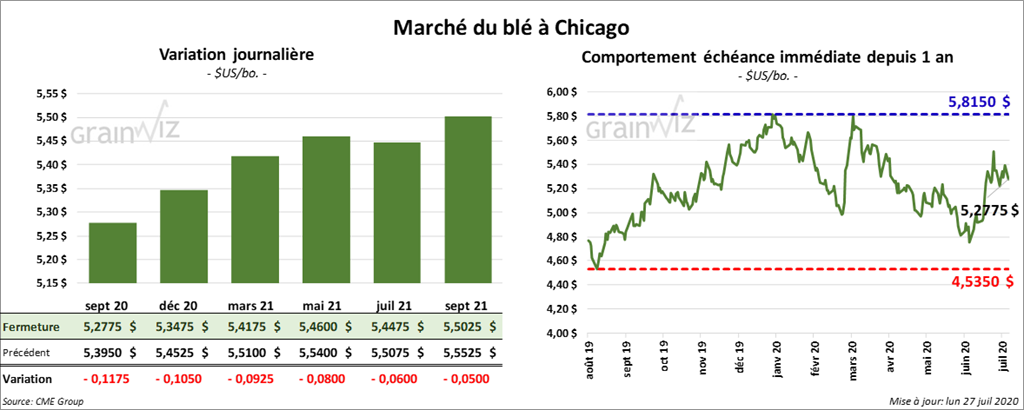 Les contrats de maïs US ont terminé la session en baisse d’une fraction de cent. Par contre, celui septembre 20 a clôturé dans le rouge par 1 ¼ cent.