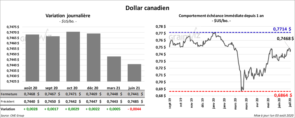 Les contrats de soya US aux échéances les plus rapprochées ont fini la session avec des gains de 2 ½ à 4 ½ cents. Ceux de tourteau de soya US ont terminé la journée en baisse de 1,80 $ à 2,20 $. Par contre, les contrats d’huile de soya US ont clôturé dans le vert entre 64 et 76 points.