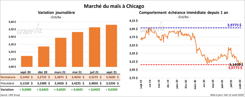 Les contrats de maïs US ont terminé la journée en hausse de 2 ¼ à 3 ¾ cents.