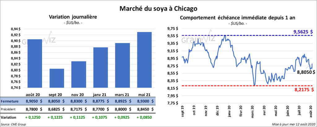 À la fermeture du marché, les contrats de soya US étaient en hausse. Ceux de l’ancienne récolte étaient en progression par 2 chiffres alors que ceux de la nouvelle ont gagné entre 7 et 9 ½ cents. Les contrats de tourteau de soya US aux échéances les plus rapprochées ont fini la séance avec des gains de 10 à 20 cents. Ceux d’huile de soya US ont également clôturé dans le vert entre 3,03 % et 3,18 %.