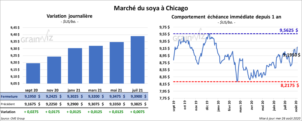 - Ce matin, l’USDA a rapporté des ventes privées à l’exportation de 400,000 tonnes de soya US 2020/2021. La Chine est la destination.
