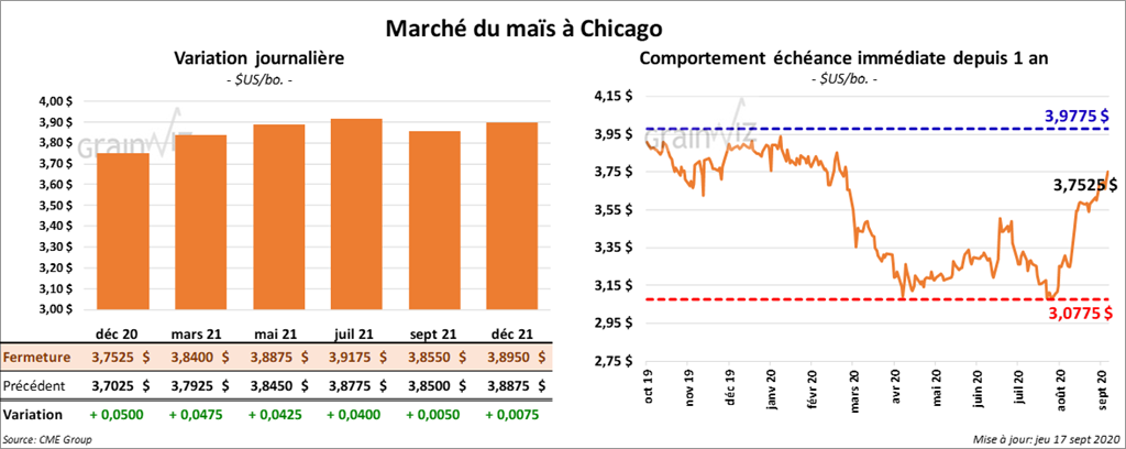 Les contrats de maïs US ont terminé la séance en hausse d’une fraction à 3 ½ cents.
