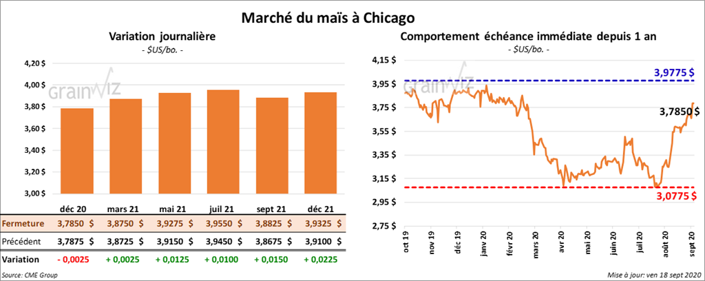 Les contrats de maïs US ont fini la session en hausse de 2 ¾ à 4 cents.