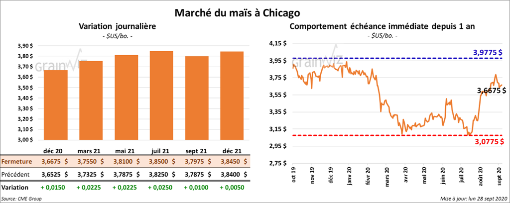 Les contrats de maïs US ont terminé en hausse de ½ à 2 ½ cents.