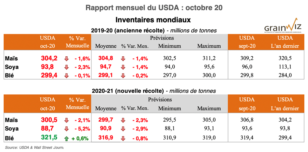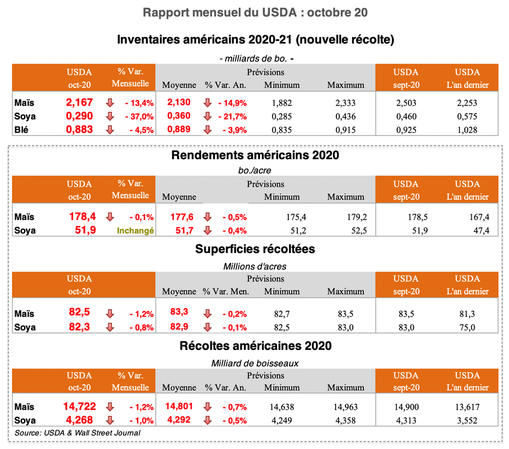 Pour accéder au rapport complet du USDA (en anglais): WASDE Oct 20