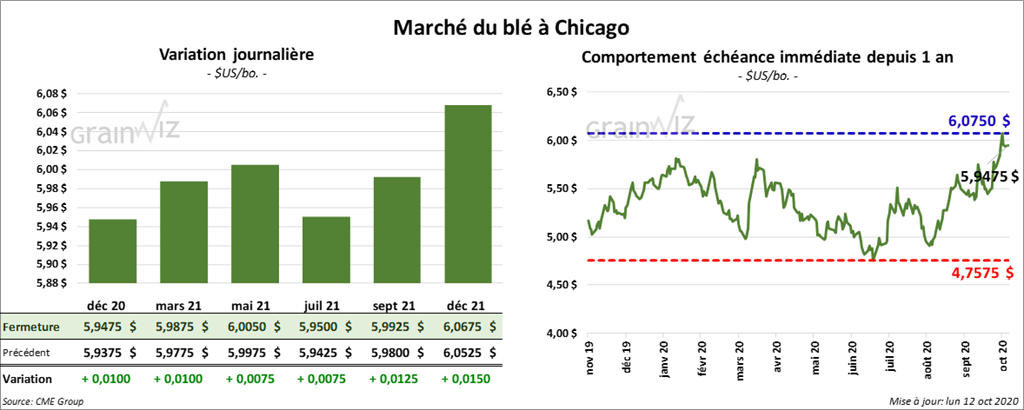 - La parution du rapport sur les inspections à l’exportation de la semaine du 8 octobre dernier et celle du rapport sur la progression des cultures en date du 11 octobre dernier ont été remises à demain en raison du congé du Colombus Day.