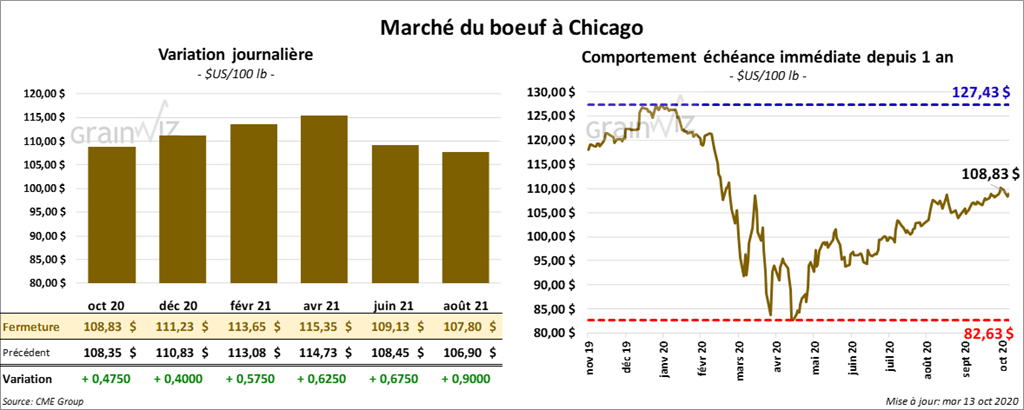 - Le 12 octobre dernier, le CME Feeder Cattle Index était en baisse de 52 cents à 140,71 $.