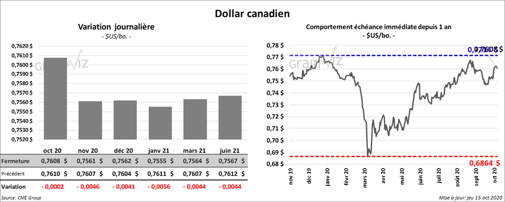 - Ce matin, l’EIA a rapporté que la production d’éthanol US a été de 937,000 barils par jour au cours de la semaine du 9 octobre dernier. C’était une augmentation de 1,5 % comparativement à la semaine précédente. Quant aux stocks, ils se sont accrus de 1,7 % par rapport à la semaine d’avant à 20 millions de barils. Les inventaires d’éthanol US étaient en baisse dans le Midwest, mais pas assez pour compenser la hausse de 506,000 barils qui a eu lieu dans le Golf.