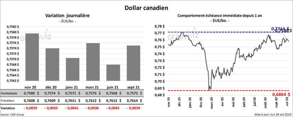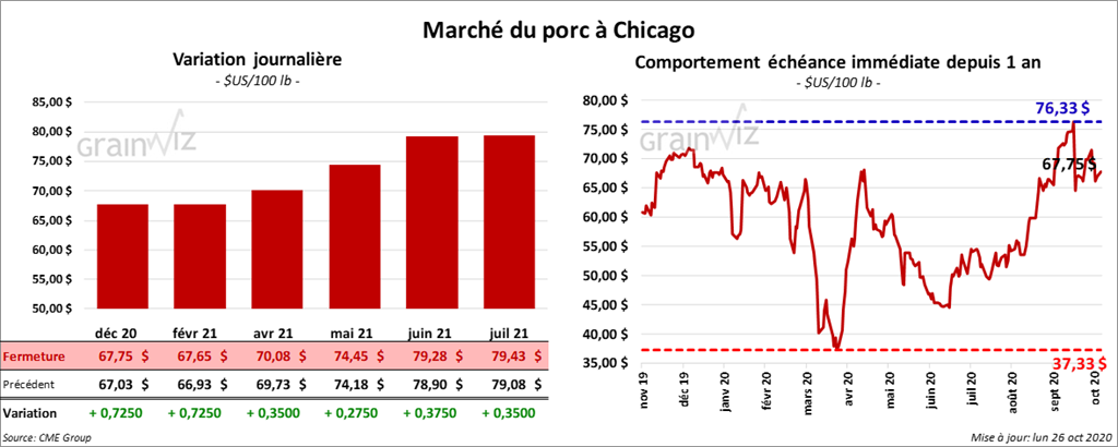 - Le 22 octobre dernier, le CME Lean Hog Index a été en baisse de 6 cents à 78,54 $.