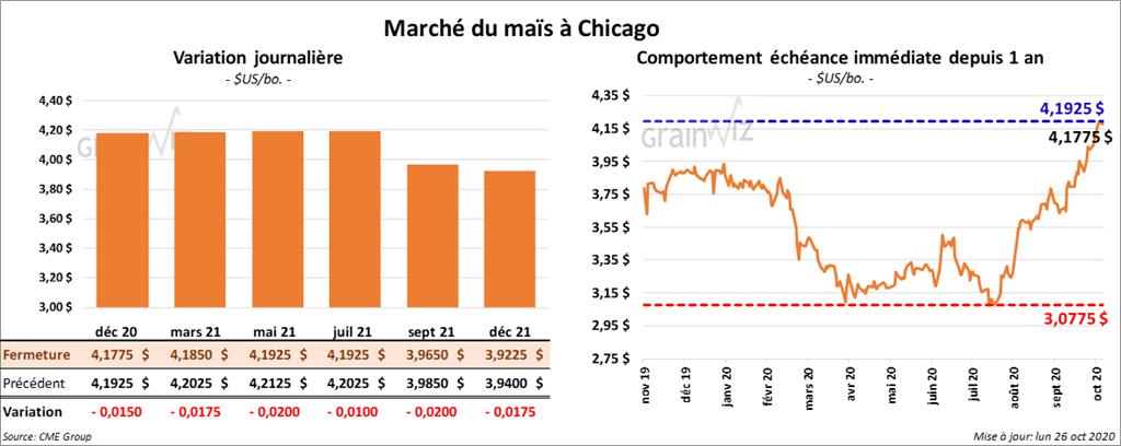 Les contrats de maïs US ont terminé la journée en baisse de 1 à 2 cents.