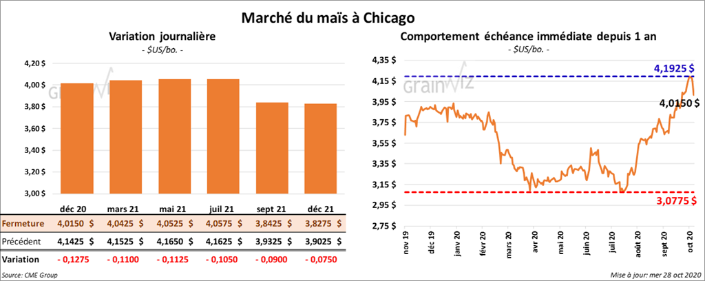 Les contrats de maïs US ont terminé la session en baisse de 10 ¼ à 14 ½ cents.