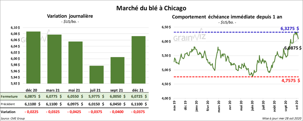 - En Europe, les prix du blé sont en baisse sous la pression des inquiétudes à propos de la propagation de la COVID-19.