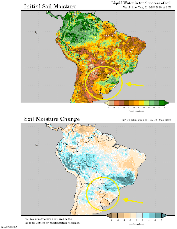 Ces cartes montrent l'évolution de l'humidité du sol dans le sud du Brésil