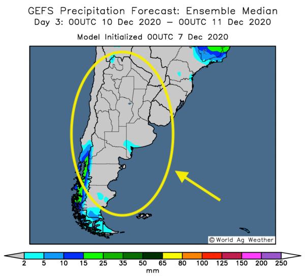 Cette carte montre les prévisions des précipitations pour l'Argentine