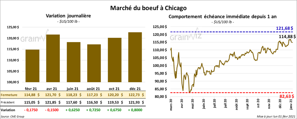 - Le 29 janvier dernier, le CME Feeder Cattle Index était en hausse de 41 cents à 136,43 $.