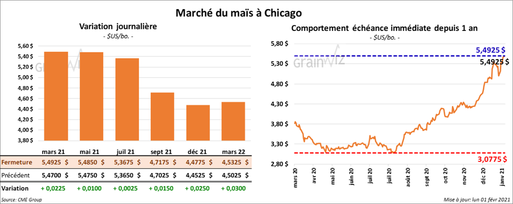 Les contrats de maïs US aux échéances les plus rapprochées ont terminé la journée avec des gains entre ¼ et 2 ¼ cents.