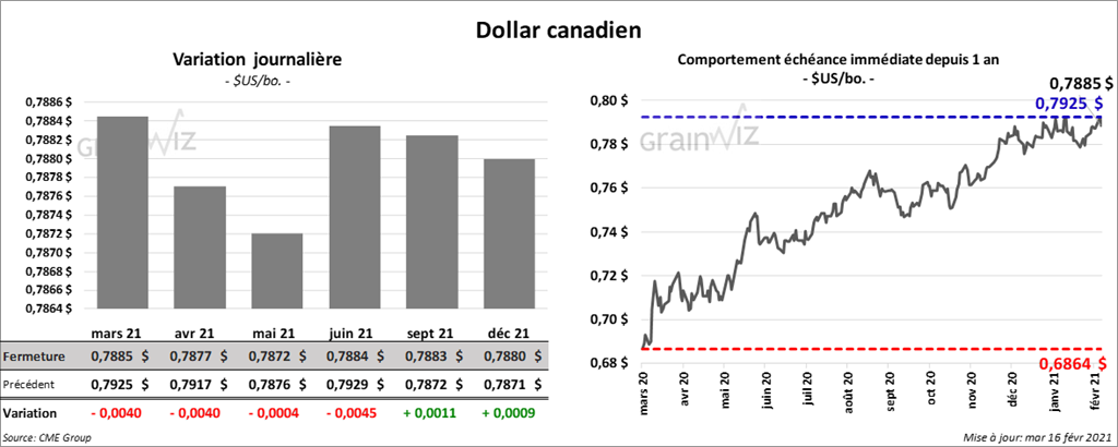 - Au Brésil, AgRural estime que vers la fin de la semaine passée, la récolte de soya brésilien 2020/21 était terminée à 9 % alors qu’elle l’était à 24 % l’an dernier à la même période.