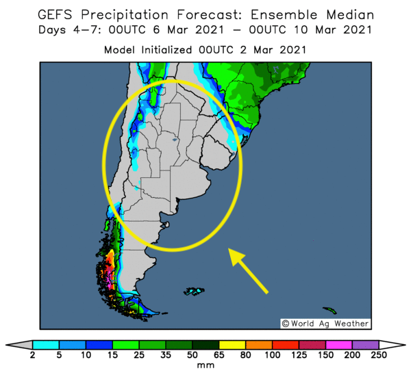 - En Argentine, des conditions sèches à plusieurs endroits sont prévues dans les prochains jours.