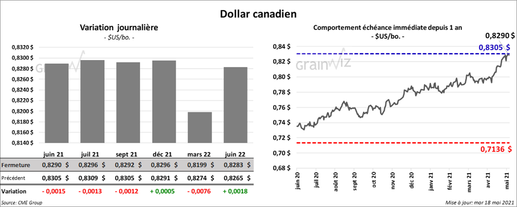 Les contrats de soya US aux échéances les plus rapprochées ont clôturé en recul entre 4 et 23 cents. Ceux de tourteau de soya US aux échéances les plus rapprochées ont terminé la séance en baisse entre 60 cents et 4,10 $/tonne. Celui octobre 21 a fait exception en fermant en hausse de 90 cents/tonne. Les contrats d’huile de soya US aux échéances les plus rapprochées ont fini la journée entre une baisse de 30 points et une hausse de 8 points.