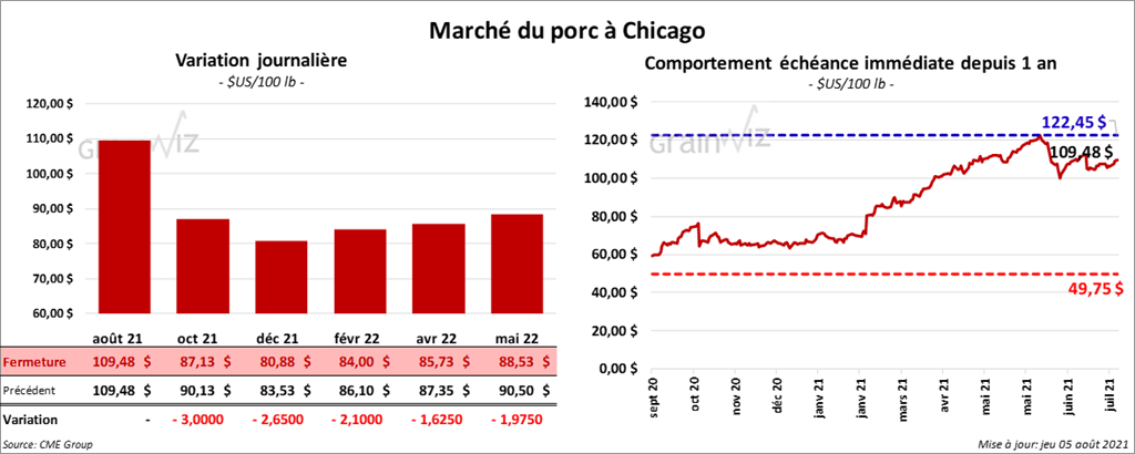 - Le 2 août dernier, le CME Lean Hog Index était en baisse de 45 cents à 111,59 $.