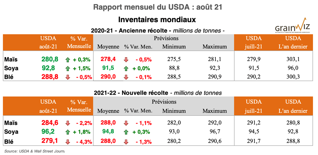 Pour accéder au rapport complet du USDA (en anglais): WASDE août 21