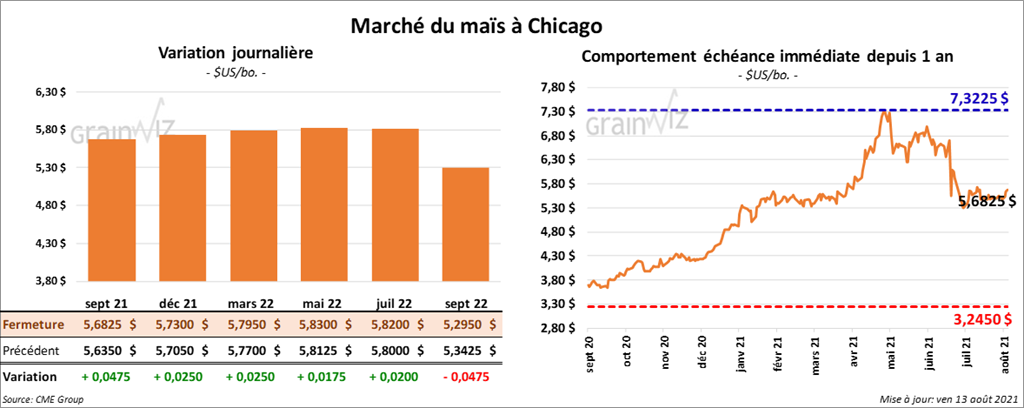 Les contrats de maïs US aux échéances les plus rapprochées ont clôturé avec des gains entre 1 ¾ et 4 ¾ cents.