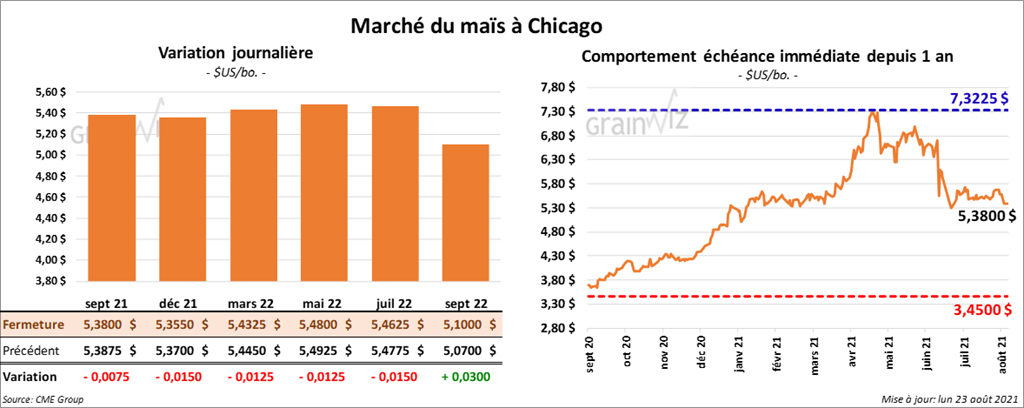 Les contrats de maïs US aux échéances les plus rapprochées ont terminé la journée en baisse entre ¾ et 1 ½ cents.